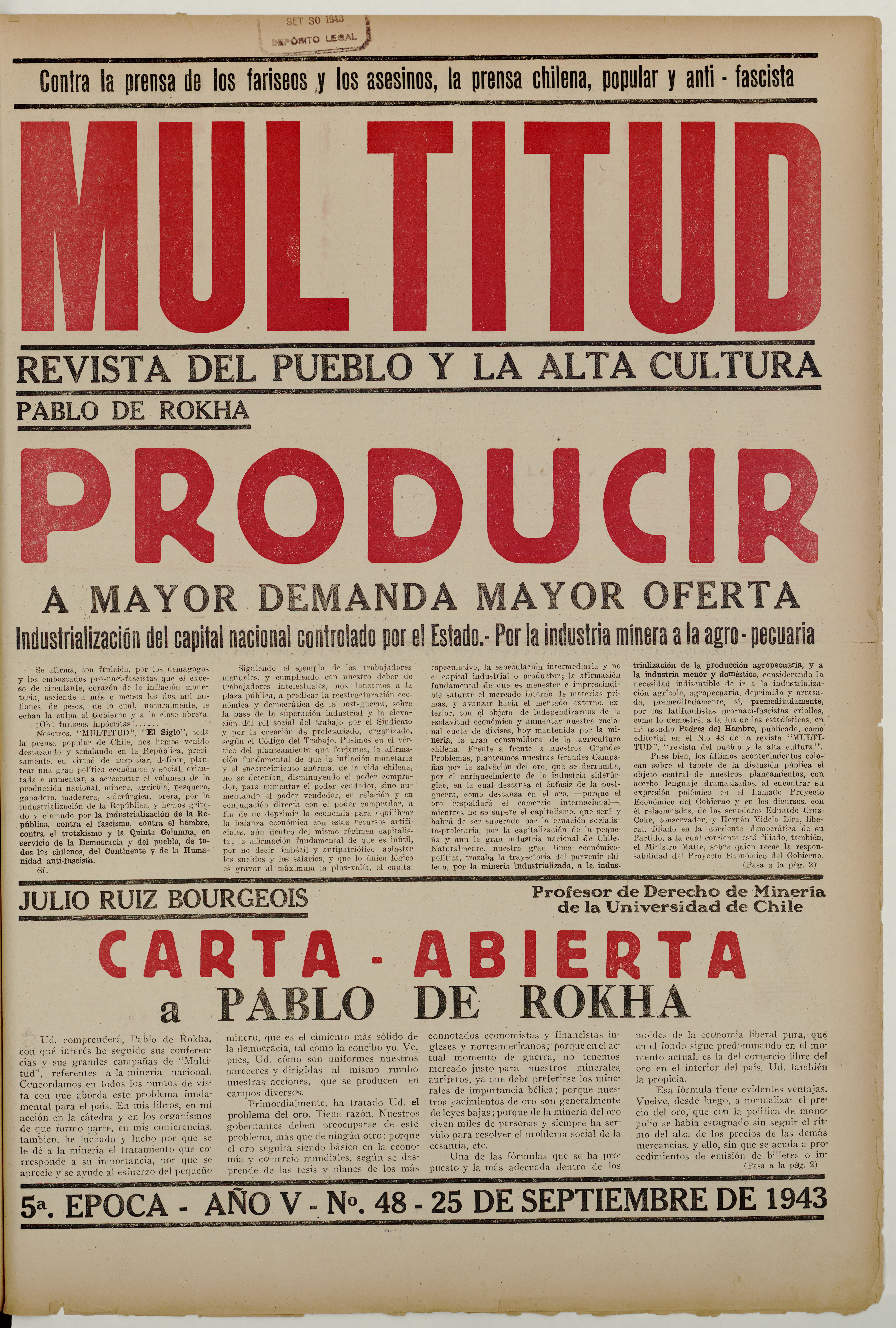 Memoria Chilena continúa su programación de minisitios de 2022 con una actualización de un minisitio antiguo, Comercio y finanzas en Valparaíso (1544-1929), y una investigación nueva sobre una revista a la que es muy difícil acceder: Multitud (1939-1944), dirigida por Pablo de Rokha.