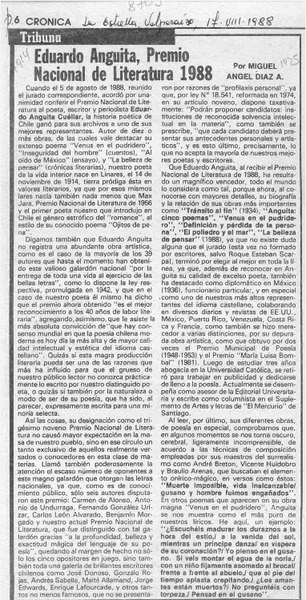 Eduardo Anguita, Premio Nacional de Literatura 1988 [artículo] Miguel Angel Díaz A.