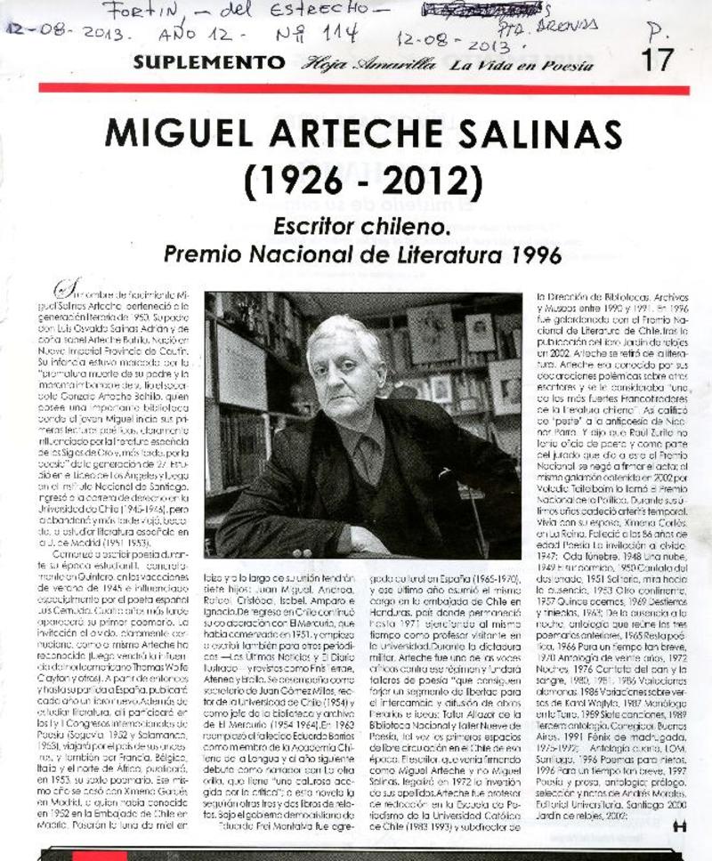 Miguel Arteche Salinas (1926- 2012) Ecritor chileno. Premio Nacional de Literatura 1996 [artículo]