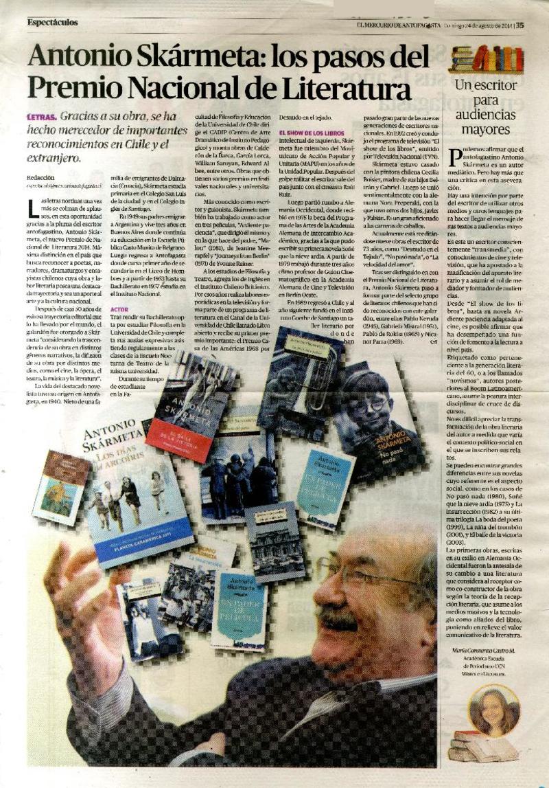 Antonio Skármeta: los pasos del premio nacional de literatura. [artículo]