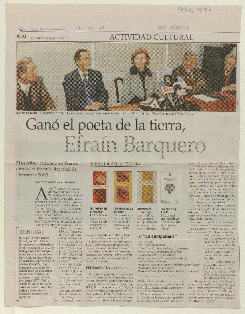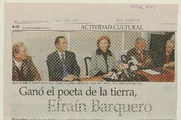 Ganó el poeta de la tierra, Efraín Barquero [artículo] Constanza Rojas <y> Maureen Lennon.