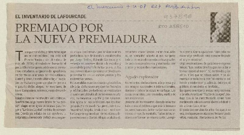 Premiado por la nueva premiadura [artículo] Enrique Lafourcade.