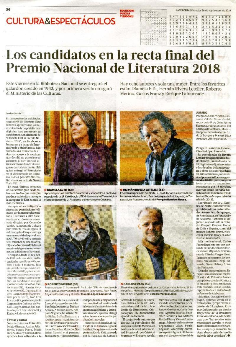 Los candidatos en la recta final del Premio Nacional de Literatura 2018 [artículo] Javier García.