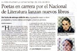 El premio cierra la convocatoria el 10 de agosto Poetas en carrera por el Nacional de Literatura, lanzan nuevos libros [artículo] : Roberto Careaga C.