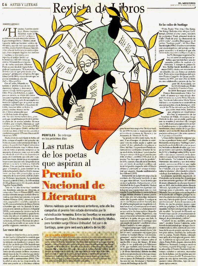Las rutas de los poetas que aspiran al Premio Nacional de Literatura [artículo] Roberto Careaga C.