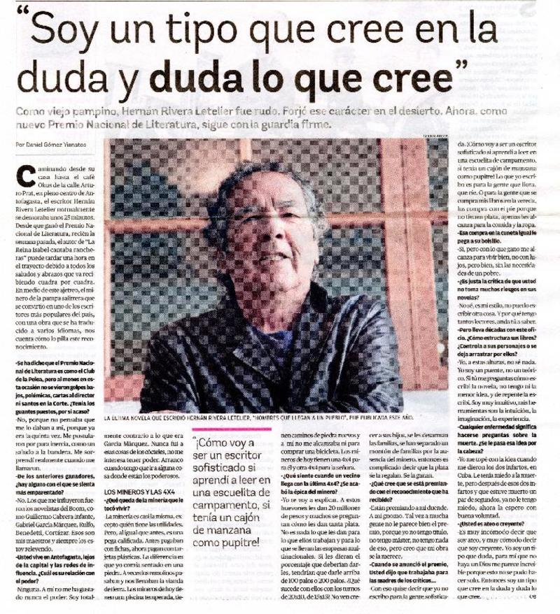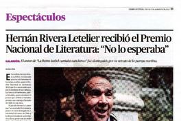 Hernán Rivera Letelier recibió el Premio Nacional de Literatura "No lo esperaba" [artículo].