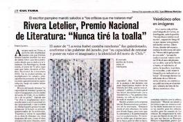 Rivera Letelier, Premio Nacional de Literatura: "Nunca tiré la toalla" [artículo] Fabián Llanca.