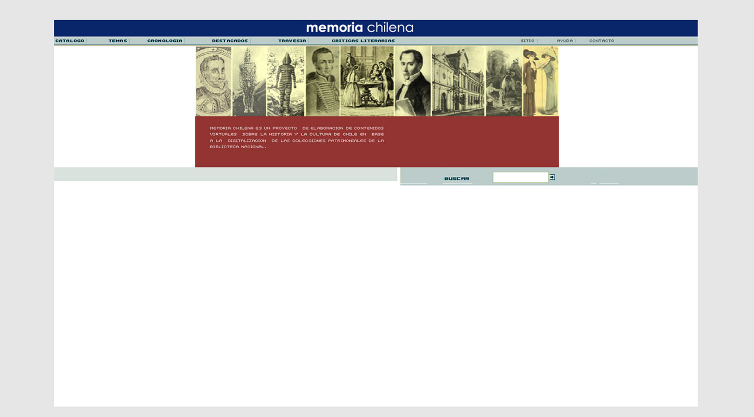 En 2005, dentro de las celebraciones del Día del Patrimonio Cultural, se lanzó una nueva plataforma web para Memoria Chilena. Esta era su portada.