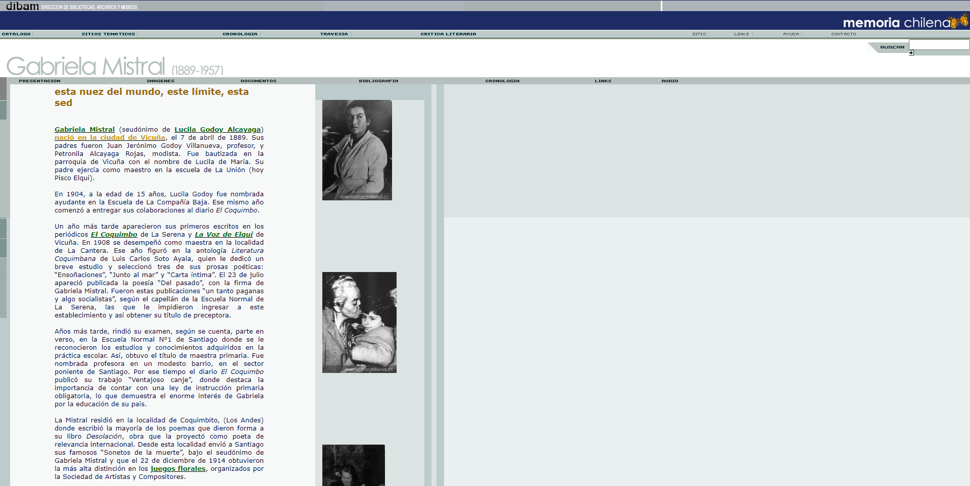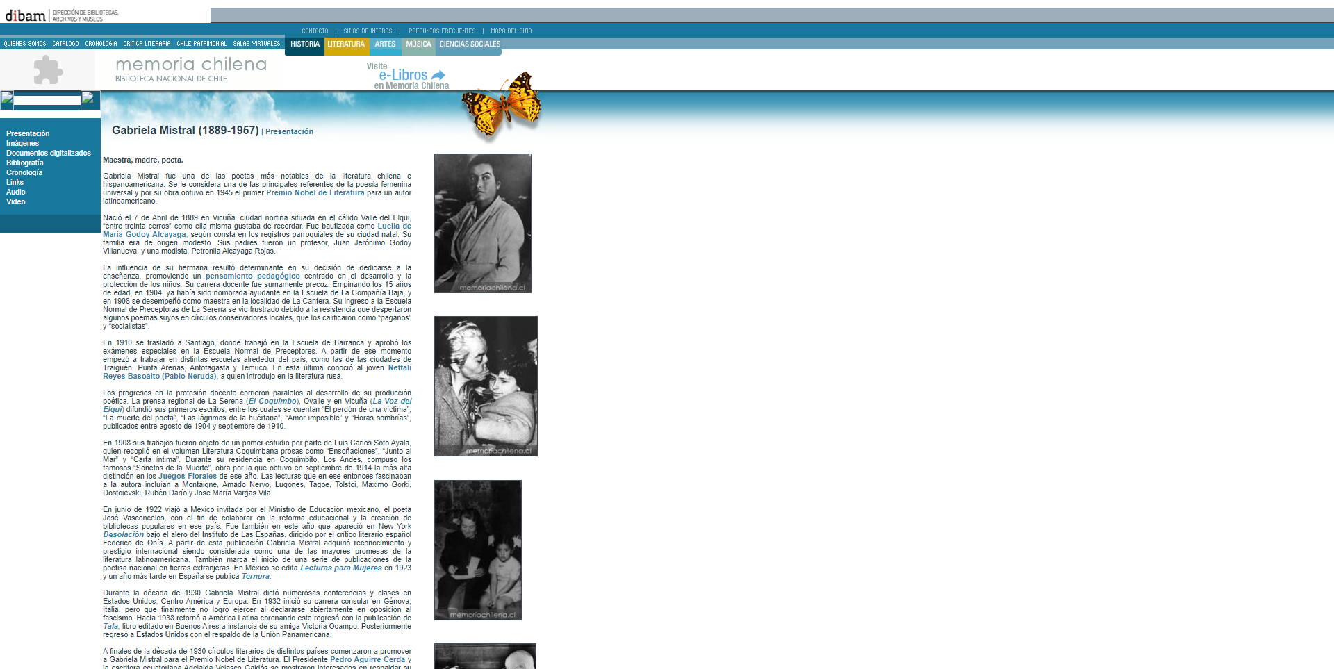 Primer minisitio de Gabriela Mistral en Memoria Chilena, en 2003