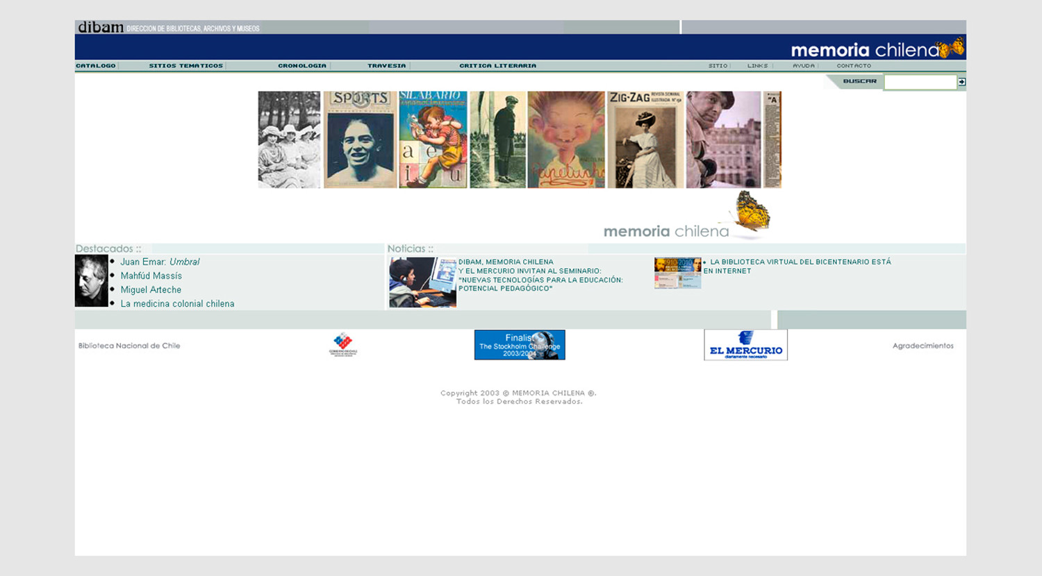 Portada de Memoria Chilena el año de su lanzamiento, en 2003