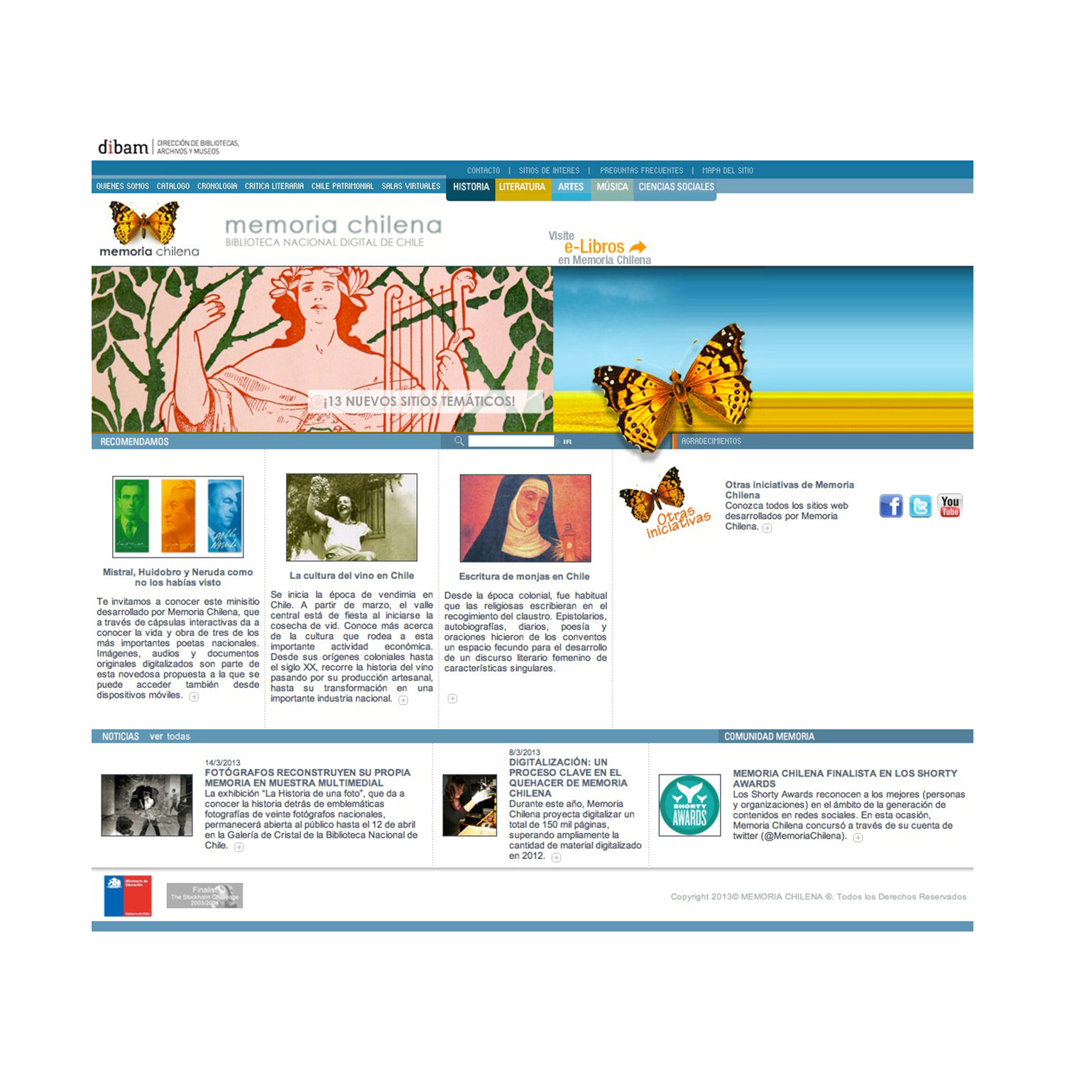 La actual plataforma de Memoria Chilena fue presentada en 2013. La portada fue renovada para poder mostrar más contenidos y novedades.