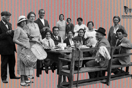 Familia almorzando al lado de roquerío en balneario de Pichilemu (1932) / Octavio Cornejo