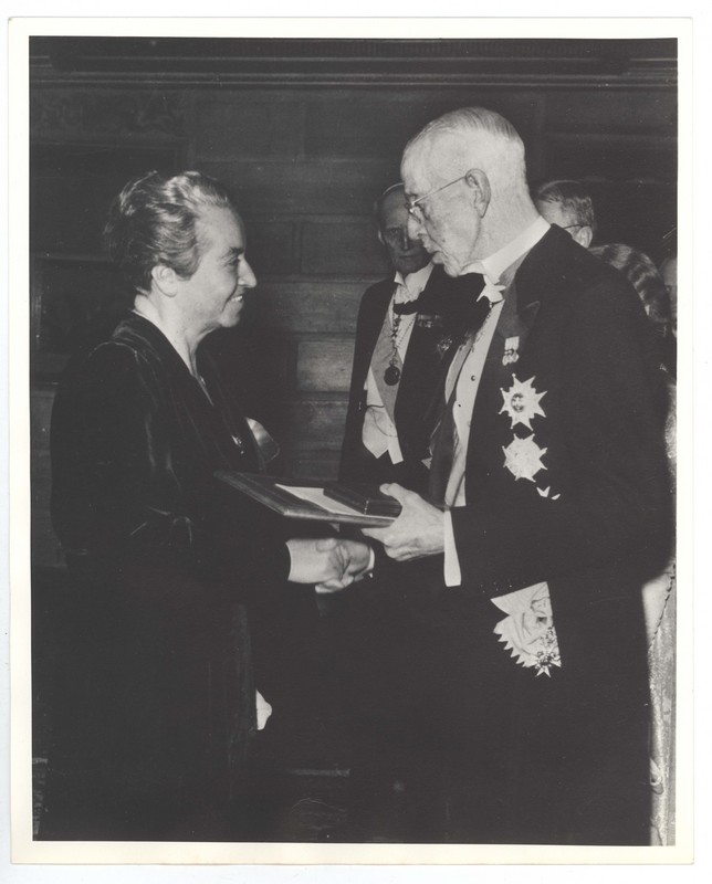 El día 18 de noviembre de 1945, Gabriela Mistral se embarcó a Estocolmo en el vapor sueco Ecuador para, el 10 de diciembre de 1945, recibir el premio a manos del Rey Gustavo V de Suecia.