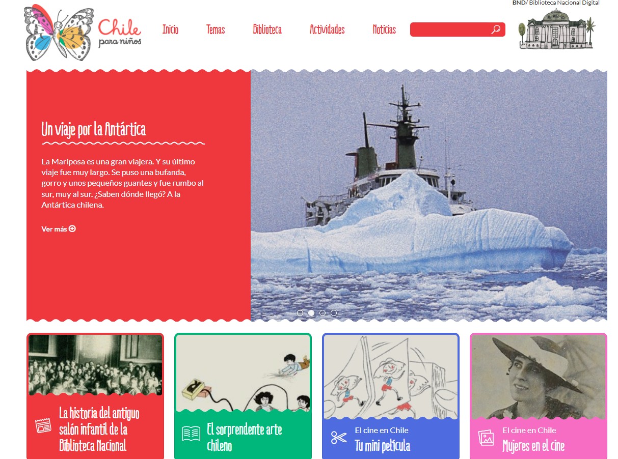 El portal web de la Biblioteca Nacional ofrece material descargable y gratuito para niñas y niños sobre historia y patrimonio cultural chileno: libros, imágenes, sonidos, videos, actividades y más.