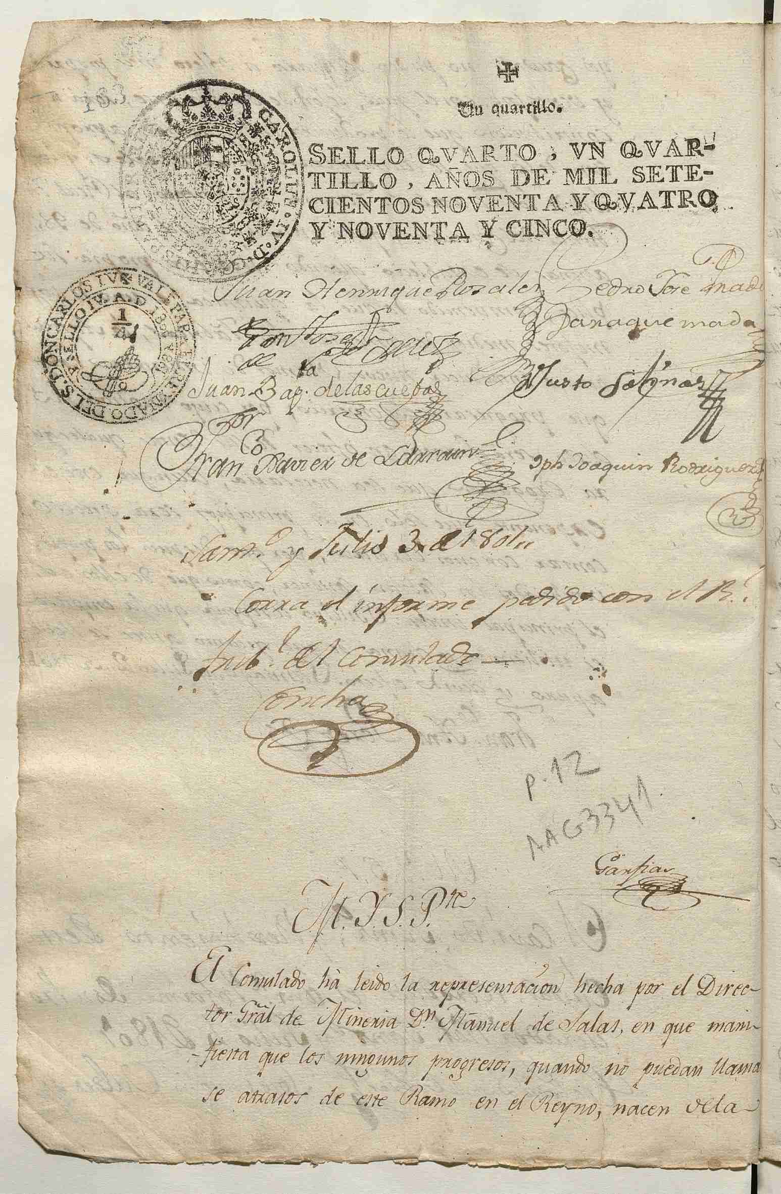Respuesta a la representación realizada al Consulado por Manuel de Salas sobre el progreso de la minería en ChileManuscrito de autoría de Manuel de Salas, incluye sello real