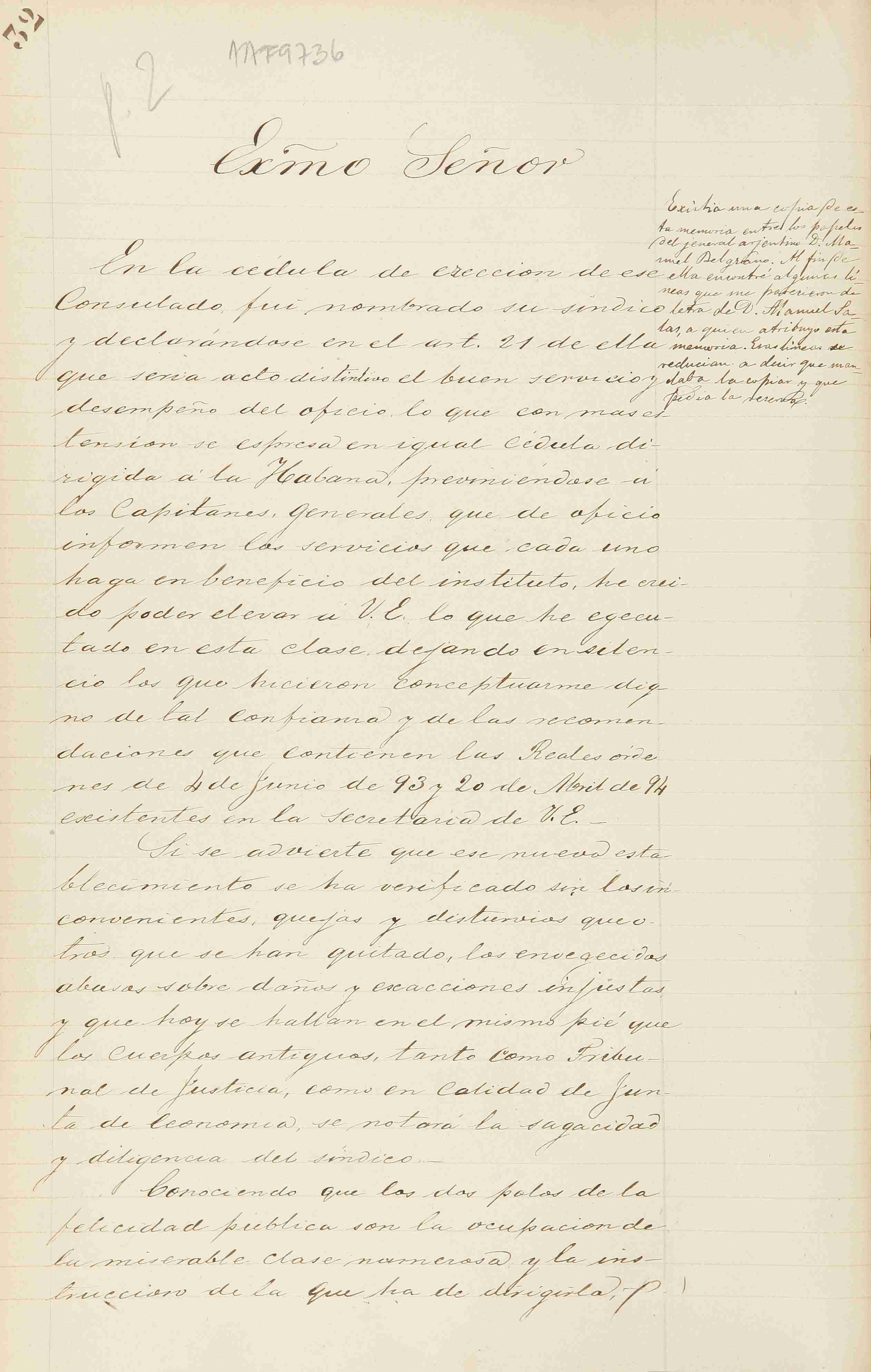Memoria que en cumplimiento de lo que S.M. previene en la Real Cédula de erección del Consulado de ChileManuscrito colonial cuya autoría se atribuye a Manuel de Salas