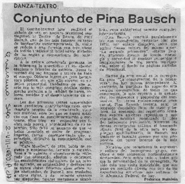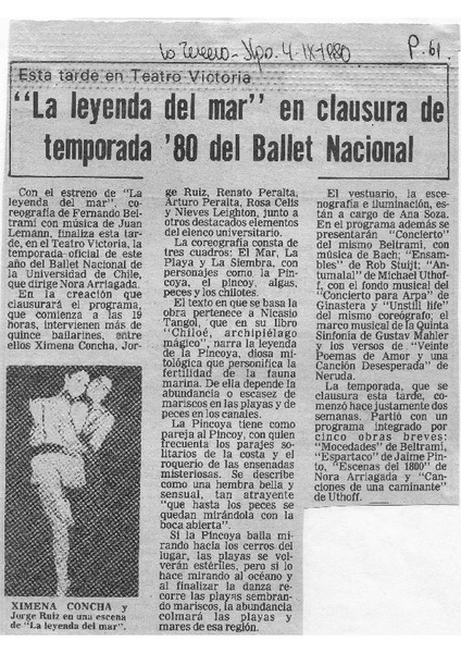 "La Leyenda del Mar" en clausura de temporada ´80 del Ballet Nacional Esta tarde en Teatro Victoria [artículo]