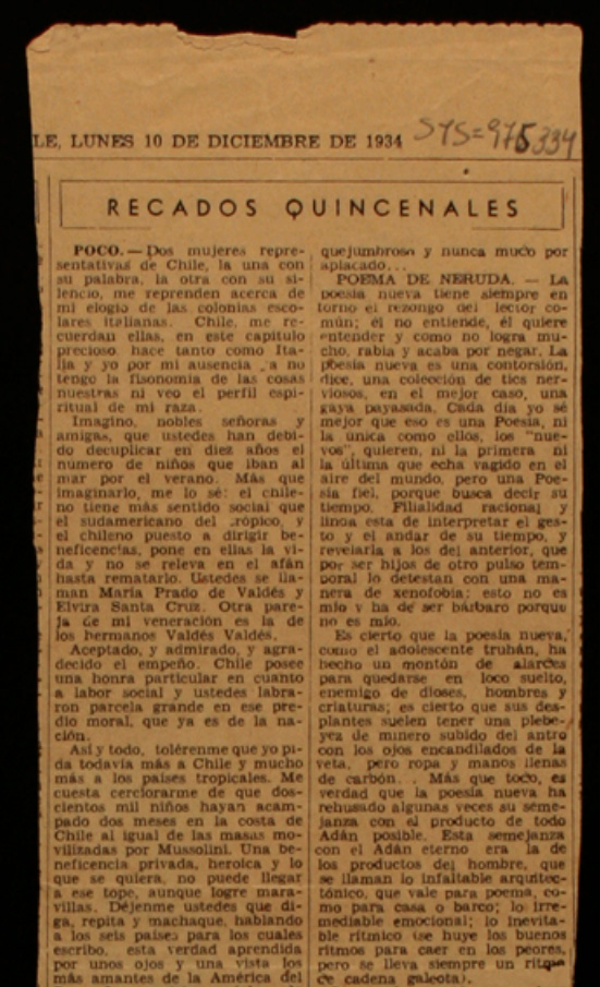 Pero ¿por qué son importantes estos textos? Principalmente, porque son el reflejo de una conciencia latinoamericana poco frecuente tanto en el período como en la actualidad; porque evidencian un programa cultural que trasciende ideologías, posturas políticas e incluso que cuestiona límites geográficos. Abordan desde impresiones netamente afectivas sobre situaciones contingentes, hasta reivindicaciones, reproches y duras críticas a la idiosincrasia no sólo de la sociedad latinoamericana, sino también europea. Son un espacio para relevar aquello en lo que creía y para denostar con crudeza lo que despreciaba. Oportunidad para expresar -como en la carta para los amigos- la satisfacción por los logros de sus queridos y de lamentar los de sus no tan queridos. Espacio también de hacer política, de denunciar las injusticias, de apelar por los derechos de los niños, de los hombres, de las mujeres y de la tierra. El poder de la lengua como capital latinoamericano y la política comunicacional de los diarios europeos frente a la realidad de este lado del mundo. Pocos temas quedan sin ser abordados en estos recados, el conflicto de Leticia, la Guerra del Chaco, la situación de los judíos, las vacaciones en Europa, el gran error de confundir políticas públicas con asistencialismo, o peor aún con beneficencia. Las reformas chilenas, tanto la agraria como la educacional y la inminente necesidad, tanto en ese entonces, como ahora de repensar nuestra educación.