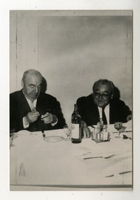 [Neruda y Andrés Sabella] [fotografía]. Santiago, Chile : [Editor no identificado], 1970. 1 fotografía : monocrmo en blanco y negro, 8 x 12 cm. .
