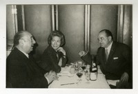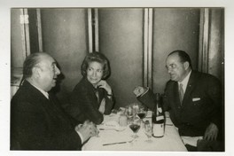 Pablo Neruda y Matilde Urrutia cenando junto a un diplomático francés.