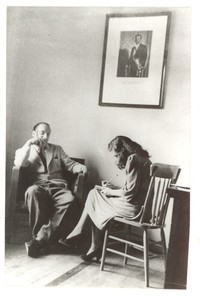 Pablo Neruda junto a su secretaria, ejerciendo funciones como Cónsul para la inmigración española en París.