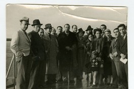 Pablo Neruda junto a Rubén Azócar, Antonio Roco, Lola Falcon, Polí Délano, Delia del Carril entre otros, en el aeropuerto despidiendo al poeta que viaja a México como Cónsul General.