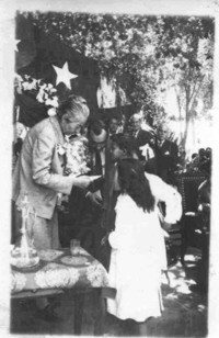 [Homenaje en Vicuña] [fotografía]. Vicuña, Chile : [Editor no identificado], 1954. 1 fotografía ; Monocromo en blanco y negro, papel fotográfico brillante, 6 x 9 cm. .