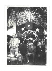 [Homenaje en la Plaza de Vicuña] [fotografía]. Vicuña, Chile : [Editor no identificado], 1954. 1 fotografía ; Monocromo en blanco y negro, papel fotográfico brillante, 6 x 9 cm. .