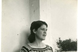[Consuelo Saleva en México] [fotografía]. [Yucatán, México] : [Editor no identificado] ; [entre 1948 y 1950]. 1 fotografía : Monocromo en blanco y negro, papel fotográfico brillante ; 5,8 x 5,8 cm. .