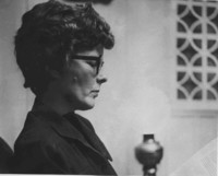 [Doris Dana] [fotografía]. Chile : [Editor no identificado], 1954. 1 fotografía ; Monocromo en blanco y negro, papel fotográfico brillante, 20,5 x 25,5 cm. .