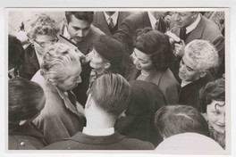 [Gabriela Mistral a su llegada a Chile] [fotografía]. [Valparaíso, Chile] : [Editor no identificado], 1954. 1 fotografía ; Monocromo en blanco y negro, papel fotográfico brillante, 17,8 x 11,5 .