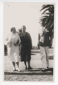 [Gabriela Mistral en Estados Unidos] [fotografía]. [California, Estados Unidos] : [Editor no identificado], 1952. 1 fotografía ; Monocromo en blanco y negro, papel fotográfico brillante, 11,4 x 17,3 .
