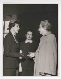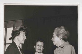 [Gabriela Mistral con su amiga] [fotografía]. Leo Rosenthal New York : [Leo Rosenthal], 1952. 1 fotografía ; Monocromo en blanco y negro, papel fotográfico brillante, 15,6 x 12 .