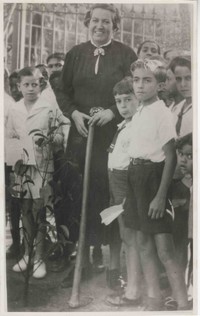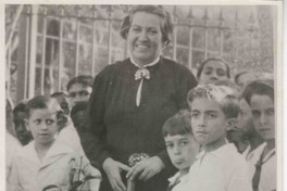Gabriela Mistral con un grupo de niños.