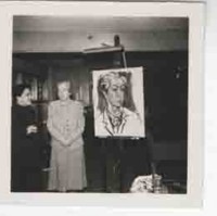 [Gabriela junto a su retrato] [fotografía].