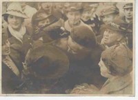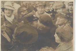 [Gabriela Mistral a su llegada a Chile] [fotografía]. Valparaiso, Chile : [Editor no identificado], 13 mayo de 1938. 1 fotografía ; Fotografía en sepia, papel fotográfico brillante, 17,4 x 12,5 cm. .