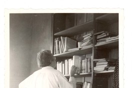 [Gabriela Mistral consultado unos libros en México] [fotografía]. Veracruz, México : [Editor no identificado] ; [entre 1948 y 1950]. 1 fotografía : Monocromo en blanco y negro, papel fotográfico brillante ; 10 x 7,5 cm. .