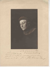 Retrato de Gabriela Mistral firmado, dedicado a Palma Guillén.