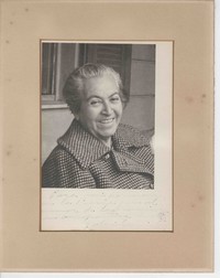 [Gabriela Mistral en Italia] [fotografía]. [Rapallo, Italia] : [Editor no identificado], 1952. 1 fotografía ; Monocromo en blanco y negro, papel fotografico brillante. 12,5 x 17,5 cm. .