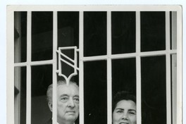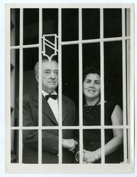 [Retrato de Joaquín Edwards Bello junto a Martha Albornoz] [fotografía]. Santiago, Chile : [Editor no identificado], [1965]. 1 fotografía : Monocromo blanco y negro, papel brillante, 23,5 x 18 cm .