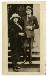 Retrato de Joaquín Edwards Bello junto a Ángeles Dupuy Ruíz, en la ciudad de Guadix, España.