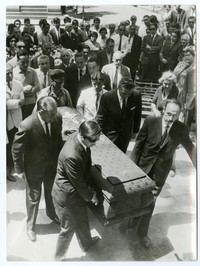 [Funeral de Joaquín Edwards Bello] [fotografía]. Santiago, Chile : [Editor no identificado], 1968. 1 fotografía : Monocromo blanco y negro, papel brillante, 24 x 17,5 cm .