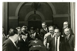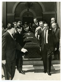 [Funeral de Joaquín Edwards Bello] [fotografía]. Santiago, Chile : [Editor no identificado], 1968. 1 fotografía : Monocromo blanco y negro, papel brillante, 23,5 x 17,5 cm .