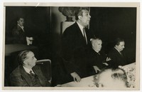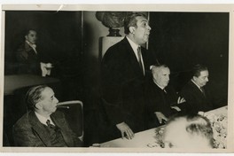 Joaquín Edwards Bello en una ceremonia, junto a otras personas no identificadas.