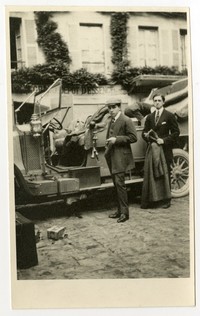 Nota al reverso : "En mi Renault, Jorge [Larrea?] y yo. Camino de Paris, 1908".