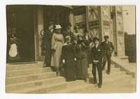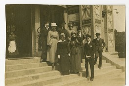 Familiares de Joaquín Edwards Bello en la entrada de una casa.