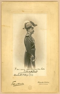 Dedicatoria, firmado al pié de la foto "A mi muy queridísimo padre, tu hijo Pancho. Madrid 1° Mayo-904." En el anverso de la imagen se puede apreciar un cuño bordeándola y otro en el sello del fotógrafo.