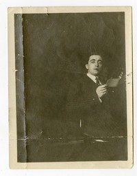 [Retrato de Joaquín Edwards Bello] [fotografía]. [París, Francia] : [Editor no identificado], 1916. 1 fotografía : Monocromo blanco y negro, papel brillante, 10,5 x 8 cm .