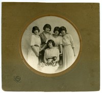 [Retrato de Magdalena Petit junto a sus hermanas] [fotografía] Santiago, Chile : [Heffer], 1915. 1 fotografía: Monocromo en blanco y negro, 22,8 x 25 cm. /15 cm. .