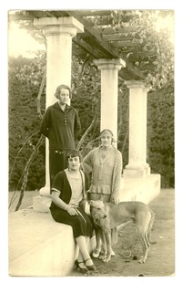 Retrato de Magdalena Petit junto a sus hermanas, bajo un parrón de su casa. Santiago 15 de abril de 1925.